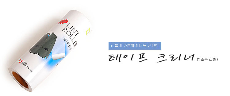 제 품 명 : 테이프 크리너 (청소용 리필) 용 도 : 과자부스러기, 머리카락, 테이블, 쇼파 커버 등의 먼지를 제거할 때 제 품 설 명 : - 리필이 가능하여 더욱 간편합니다. - 아이들이 먹다 바닥에 흘린 과자 부스러기, 머리카락, 커버에 앉은 먼지들도 손쉽게 해결됩니다.