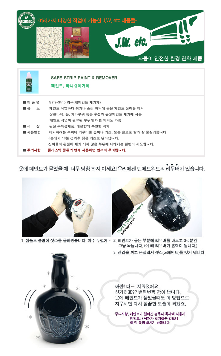 품명 및 모델명 : Safe-Strip 리무버페인트,바니쉬 제거제법에 의한 인증허가 : 해당없음제조국 : 국내제조자 : 페인트인포A/S 책임자와 전화번호 : 행복고객센터 1688-8552